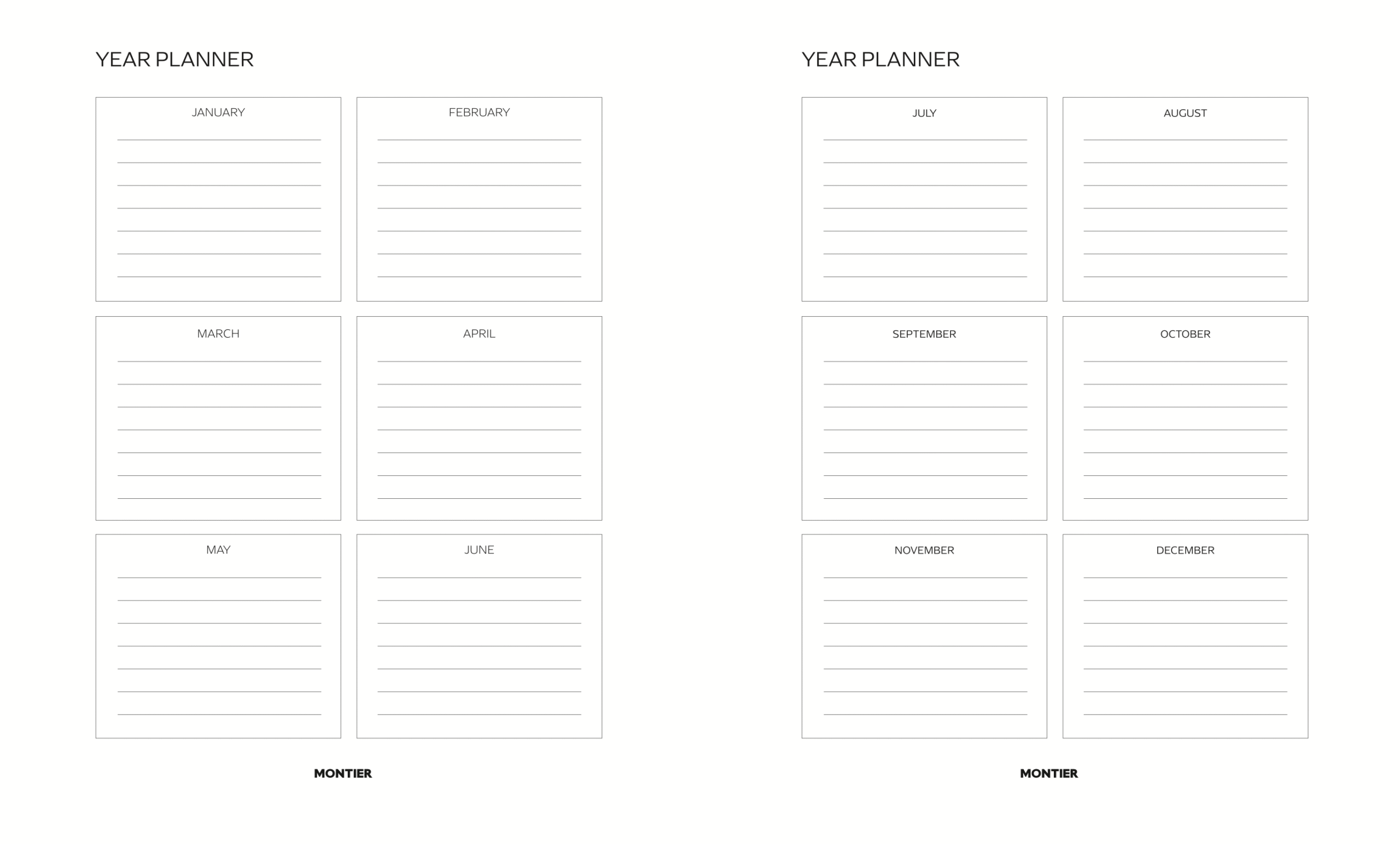 What really sets Montier planners apart is their thoughtful inner design. We’ve included planning tools to help you manage your year and day, ensuring you stay focused on your goals and priorities. Inside, you’ll find tips on how to professionally plan the year, the day, and even a gift planner to help you plan special occasions for your loved ones in advance.
